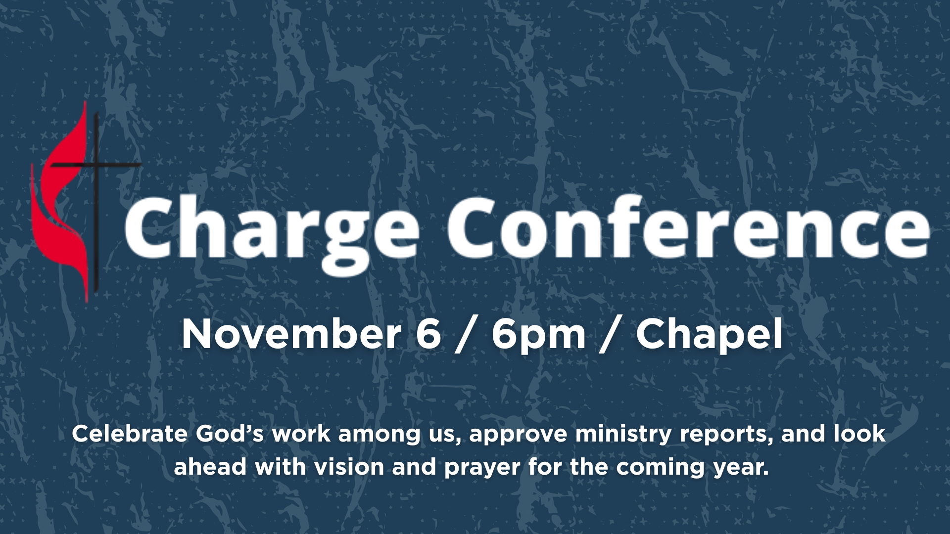 Mark your calendars! Gainesville First United Methodist Church will hold its annual Charge Conference on Thursday, November 6, at 6:00 p.m. This year, in partnership with our friends at Hemlock Grove UMC. This important gathering is where we celebrate God’s work among us, approve ministry reports, and look ahead with vision and prayer for the coming year. All church members are encouraged to attend!