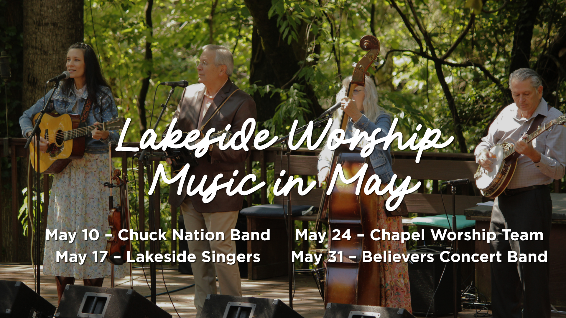 Spend your Sunday mornings in May at Lakeside Worship at 8:30am in a beautiful outdoor setting by the water. It’s a unique opportunity to worship with different music teams each week.
